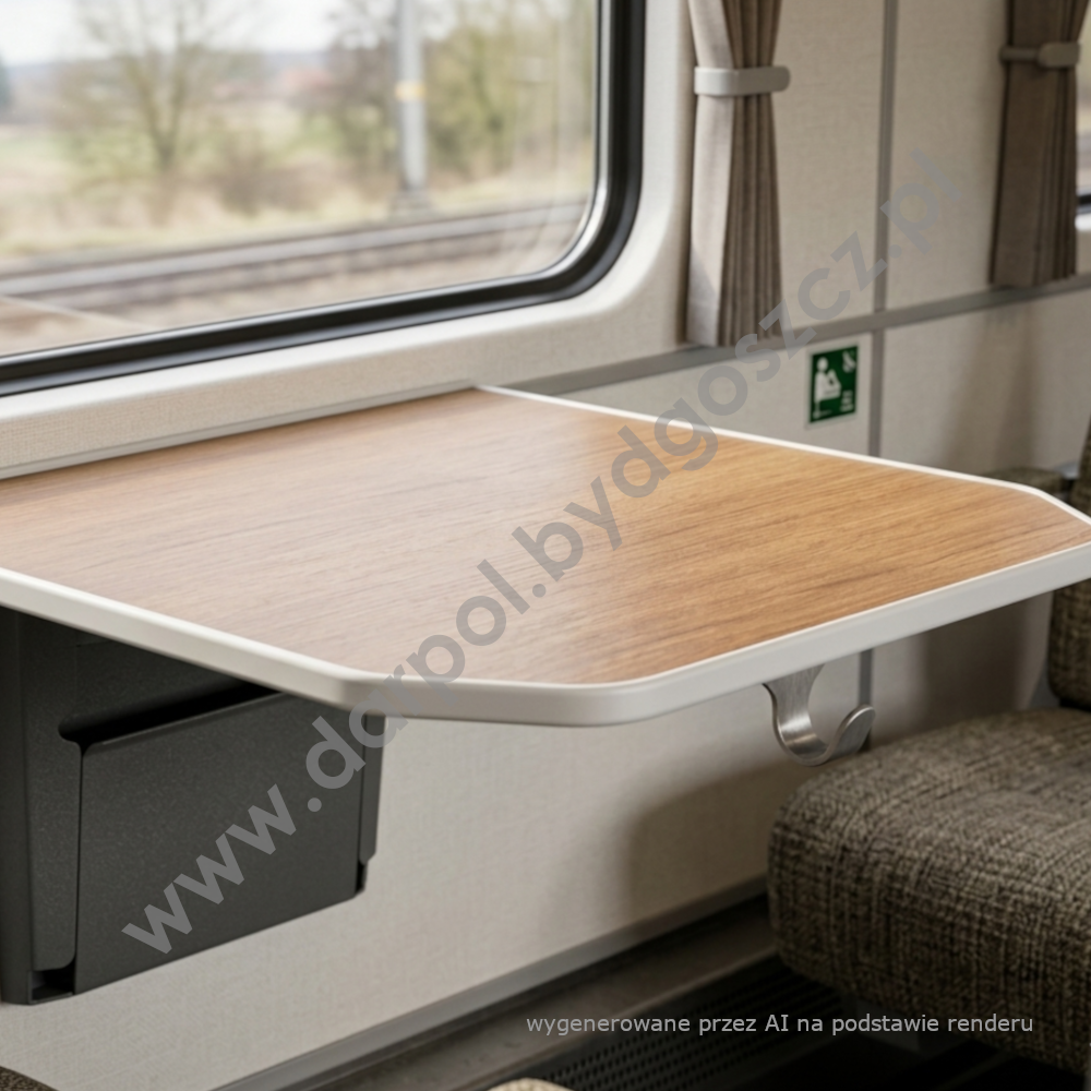 The Bistro double table is a modern and ergonomic solution designed specifically for passenger areas in rail vehicles. Ideal for dining cars and bistro areas. Its sturdy, shock-resistant construction, high aesthetic value and ease of cleaning make it a piece of equipment that raises the standard of the entire train.