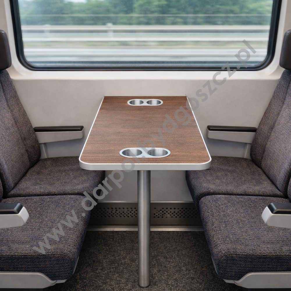 The four-person table is a practical and ergonomic solution designed for spaces with opposite seating arrangements. It provides comfortable seating for four passengers, creating a comfortable area for working, eating, business conversations, or family rail travel.